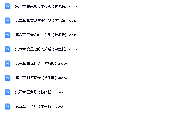 资源名称:北师大版(2024)初中数学七年级下册(2024)成套ppt课件+教案+单元教学整体设计+导学案+习题试卷+电子课本素材汇编