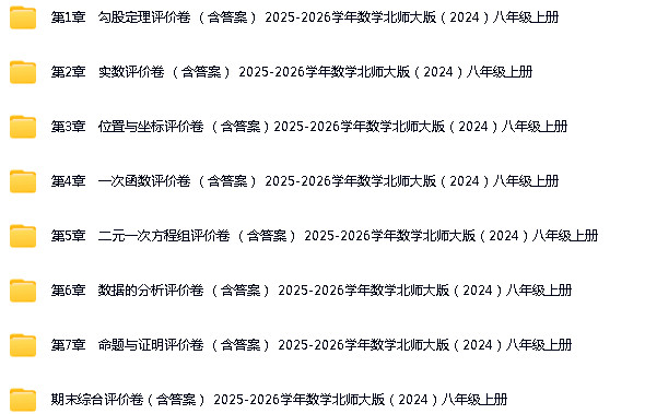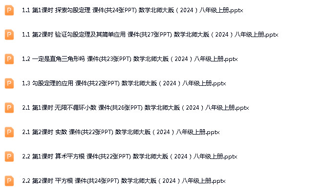 资源名称:北师大版(2024)初中数学八年级上册(2024)多套ppt课件+教案+导学案+试题练习+电子课本素材汇编