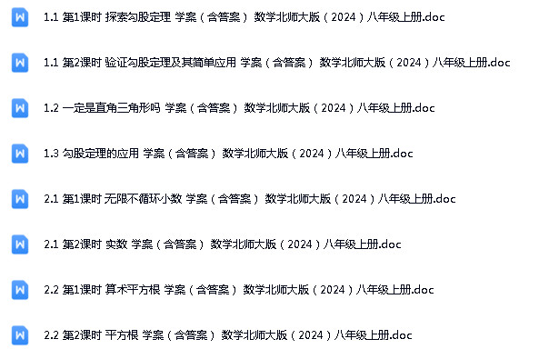 北师大版(2024)初中数学八年级上册(2024)多套ppt课件+教案+导学案+试题练习+电子课本素材汇编,此资源由会员整理,教师听课网是教师朋友的最佳选择。如需下载完整格式资源,请点击上方立即下载,解压即可