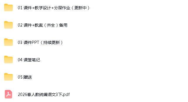 资源名称:人教部编版(2024)小学语文三年级下册成套ppt课件+教案+试题练习+电子课本素材+课堂笔记汇编