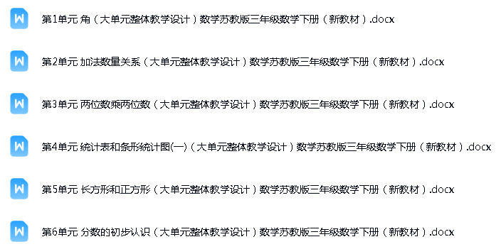 资源名称: 新苏教版(2024)小学数学三年级下册课件+教案+学习任务单+练习+大单元教学设计+电子课本素材汇编(更新中)
