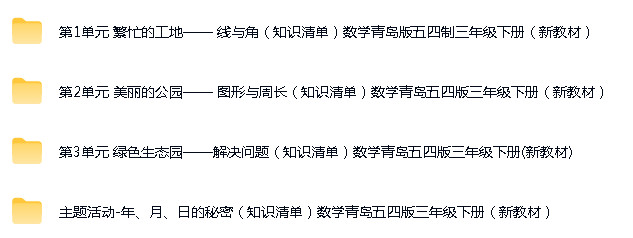 资源名称:青岛版(五四制)(2024)小学数学三年级下册成套ppt课件+教案+试题练习+单元测试+知识清单+pdf电子课本汇编