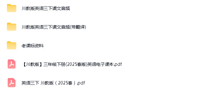 资源名称:新川教版(三年级起点)(2024)小学英语三年级下册音频素材+电子课本素材汇编