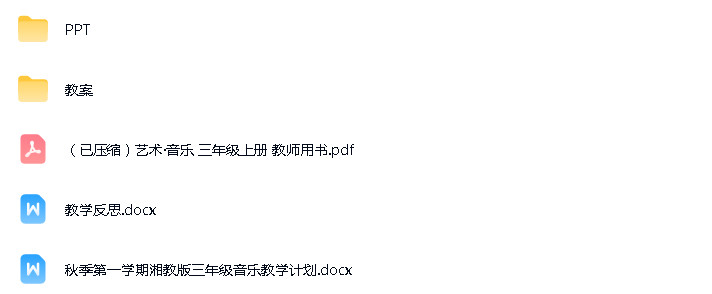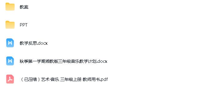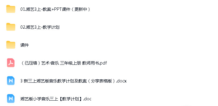 资源名称:湘文艺版(2024)小学音乐三年级上册(2024)成套ppt课件+教案+教学计划+素材资源包+PDF电子课本汇编