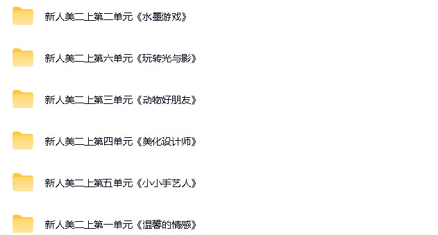 资源名称:人美课标版(2024)小学美术二年级上册(2024)多套精品ppt课件+教大单元教学设计+PDF电子课本+教学计划素材汇编
