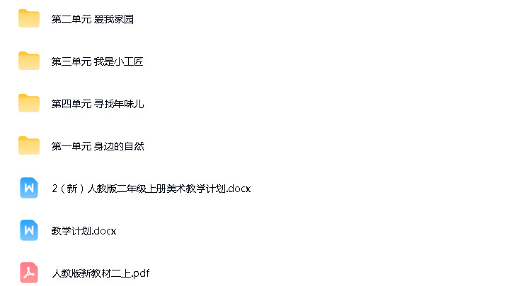 资源名称:人教课标版(2024)小学美术二年级上册(2024)成套ppt课件+教案+教学计划+PDF电子课本+素材汇编