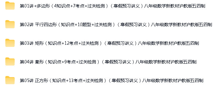 资源名称:沪教版(五四制)(2024)初中数学八年级下册成套ppt精品课件+专项练习+pdf电子课本汇编(更新中)