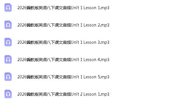 资源名称:冀教版(2024)初中英语八年级下册成套ppt精品课件+教案+分成练习+试题试卷+课文音频素材汇编