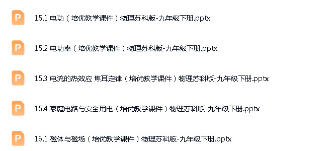资源名称:苏科版(2024)初中物理九年级下册成套ppt课件+试题练习+单元测试+复习课件+素材汇编