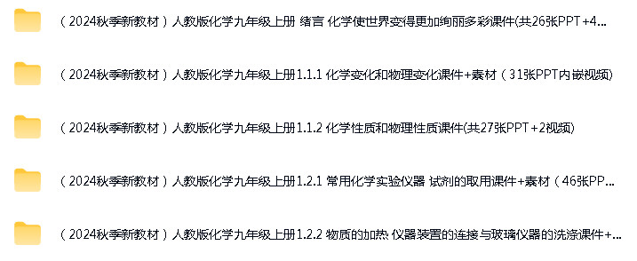 资源名称:人教版(2024)初中化学九年级上册成套ppt课件+核心素养教案+导学案(含答案)+试题练习+电子课本汇编