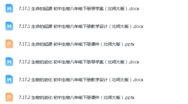 资源名称:北师大版(新课程标准2024)初中生物八年级下册成套ppt精品课件+教案+导学案+同步单元练习+电子课本汇编
