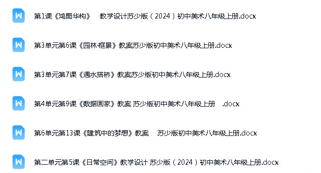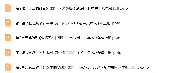 资源名称:苏少版(2024)初中美术八年级上册成套ppt精品课件+多套教案+电子课本+大单元教学计划素材汇编