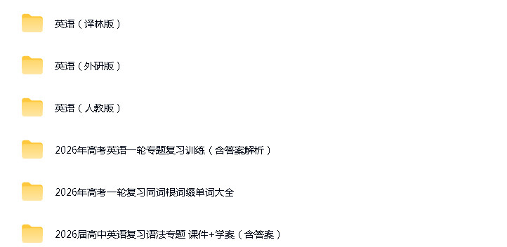 资源名称:2026高中英语总复习(一二轮)资料汇编(更新中)